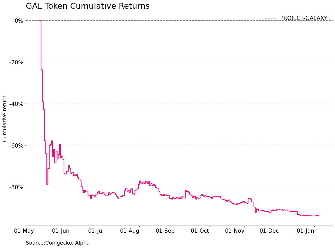 The Gal Galaxy Token has seen a significant decline in value since its launch, with a drop of 94% according to data from Coin Gecko. This is not unusual in the cryptocurrency world, as many blockchains and tokens have experienced similar declines of 80% to 95%. However,