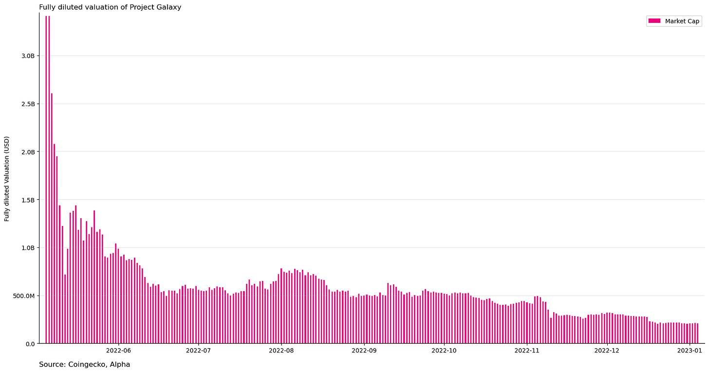 There are a total of 200,000,000 GAL tokens in circulation. So far, 31% of the GAL tokens have been unlocked, which is approximately $67 million in value. The remaining 69% of the tokens, valued at around $138 million, are scheduled to be unlocked in the future. On January 5, 2023, an additional 0.64% of the tokens, or 3.66% of the Future Development Pool (FDV) worth approximately $1.39 million, will be unlocked.